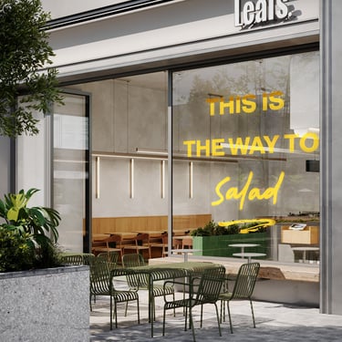 For this project, we collaborated with a UK-based brand and interior design agency specialising in global hospitality to create 3D visuals for Leafs, a fresh salad bar concept planned to open in Dubai. The CGI visuals were developed to illustrate the concept’s key design elements such as colour and materials, lighting atmosphere, and branding integration, ensuring the design was clearly understood and approved by the client before moving forward with the interior fit-out.