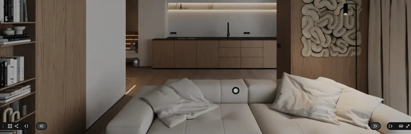 We process the 3D model into a high-quality, realistic 360 render and then create the virtual tour, integrating interactive features to enhance the experience.